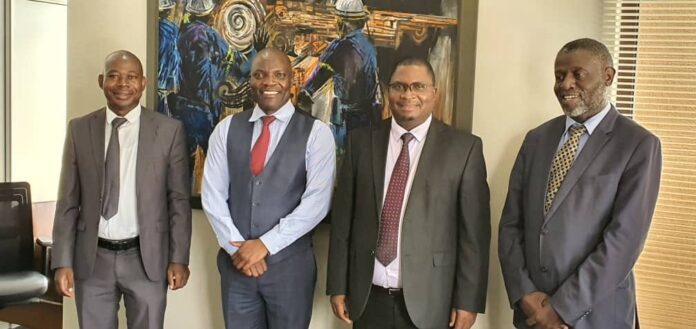 Left to right: Brian Musonda, ZCCM-IH Chief Investments Officer; Augustine Mubanga Association of Mine Suppliers and Contractors President; Mabvuto Chipata, ZCCM-IH Chief Executive Officer and George Jere General Secretary of the Association